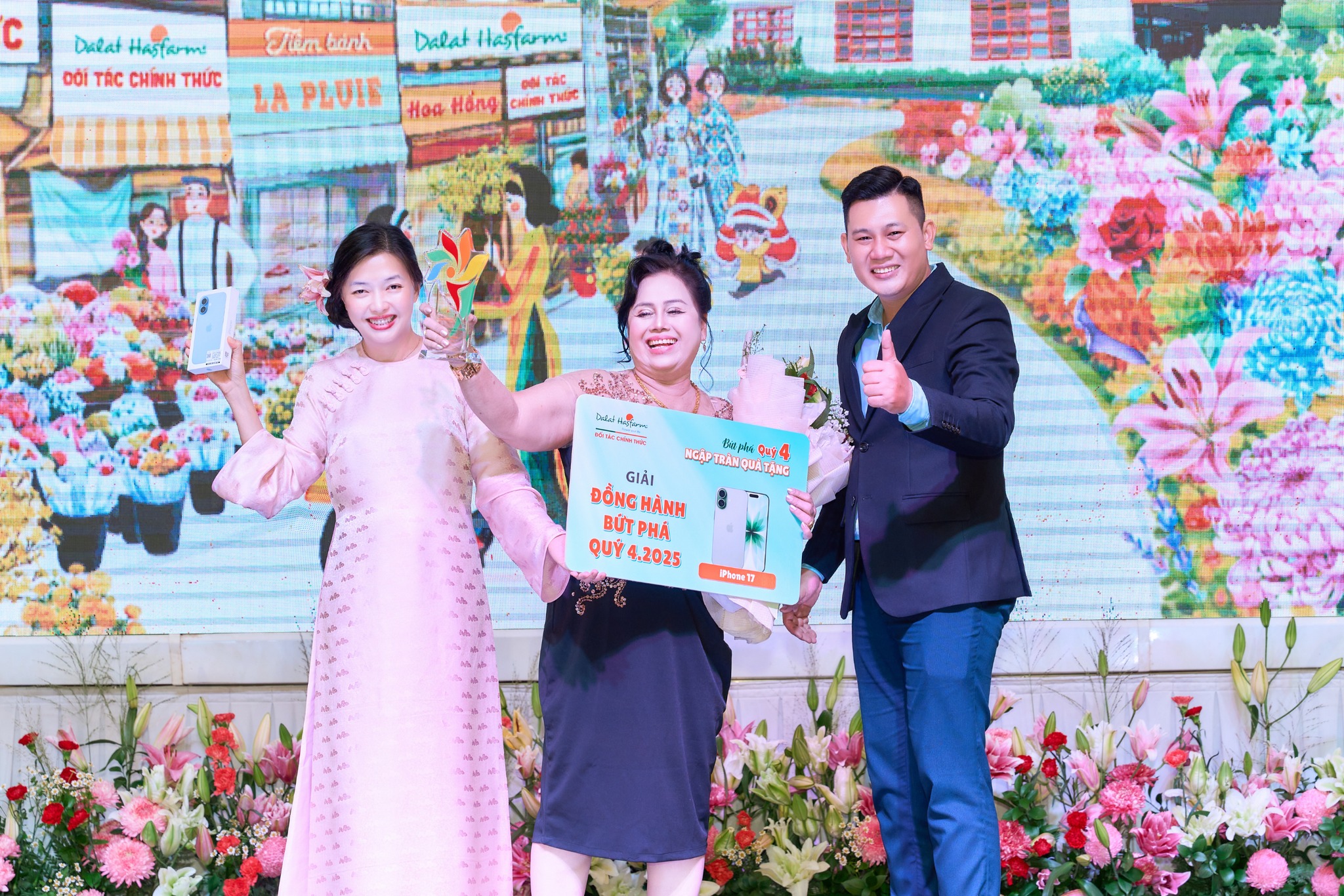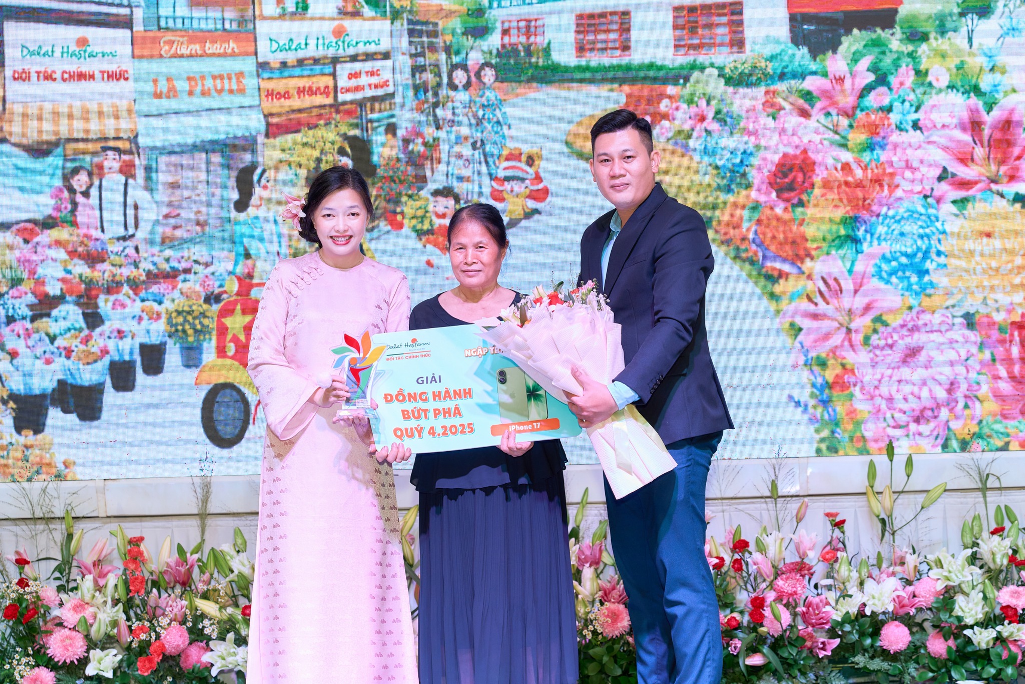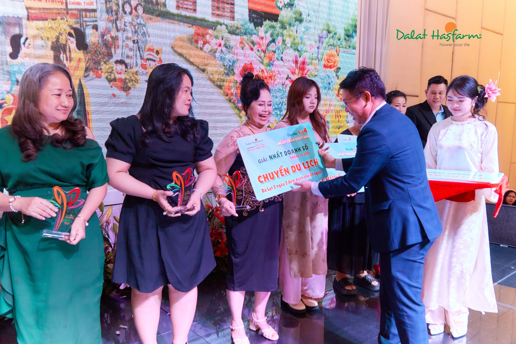 Điểm nhấn của chương trình đến từ những khoảnh khắc, nhận quà trao thưởng & vinh danh, như một lời ghi nhận chân thành dành cho sự tin tưởng, nỗ lực và gắn bó của các đối tác đã cùng Dalat Hasfarm nuôi dưỡng thị trường hoa tươi trong suốt thời gian qua.